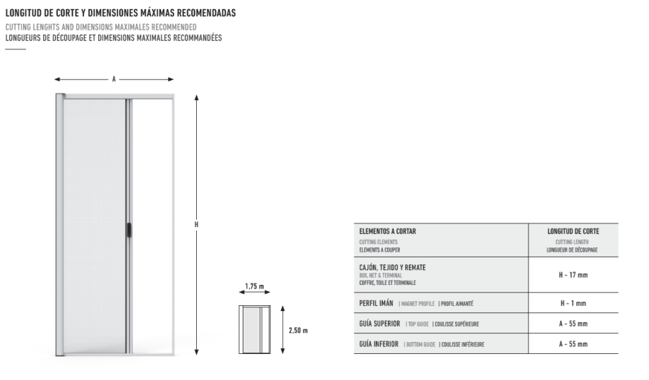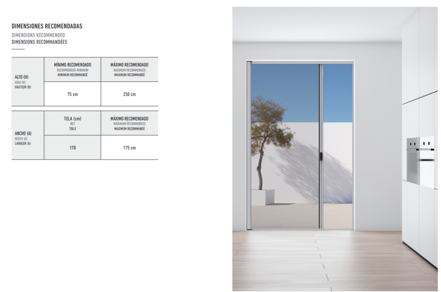 Para su correcto funcionamiento, el hueco donde se instale la mosquitera tiene que estar perfectamente escuadrado por lo que recomendamos su instalación sobre perfilería.