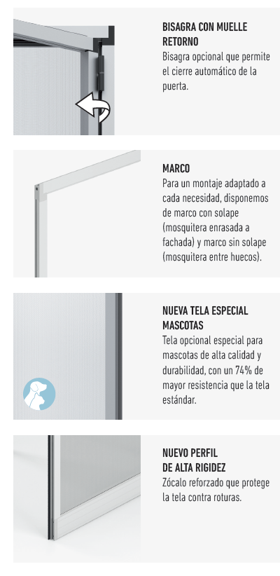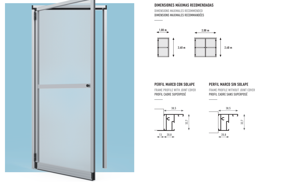 Practik es la mosquitera ideal para huecos que carezcan de puerta y no requieran de seguridad adicional. Puede fabricarse con apertura a derecha o izquierda indistintamente.
