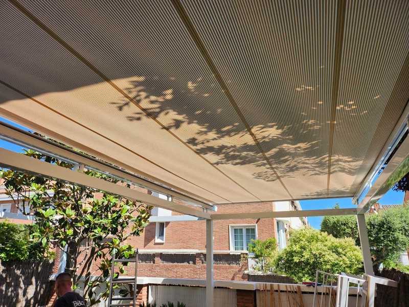 El Versiplan Pro es un sistema de toldo veranda de alta gama diseñado para ofrecer protección solar eficaz en cubiertas, techos acristalados, verandas, jardines de invierno y espacios exteriores con poca pendiente. A diferencia de los toldos tradicionales verticales o de brazos, este modelo actúa horizontalmente, proporcionando sombra y confort térmico donde otros toldos no pueden instalarse.