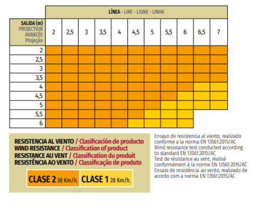 -Pro Air: Línea máxima: 6m con dos guías. 7m con tres guías la central sin tensión. Salida máxima: 4m (5m dejando la portería como máximo a 4 m de la pared y con un voladizo máximo de 1 m para las