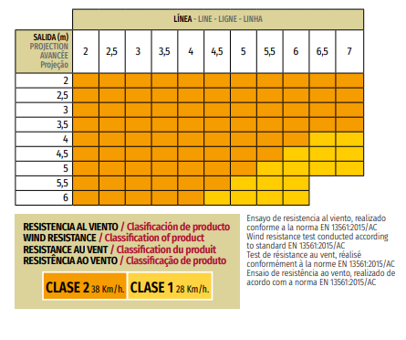 -Pro: Línea máxima: 6m con dos guías. 7m con tres guías la central sin tensión. Salida máxima: 6 m. (5 m. para líneas mayores de 6 m).