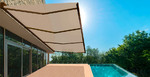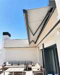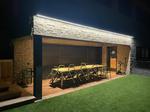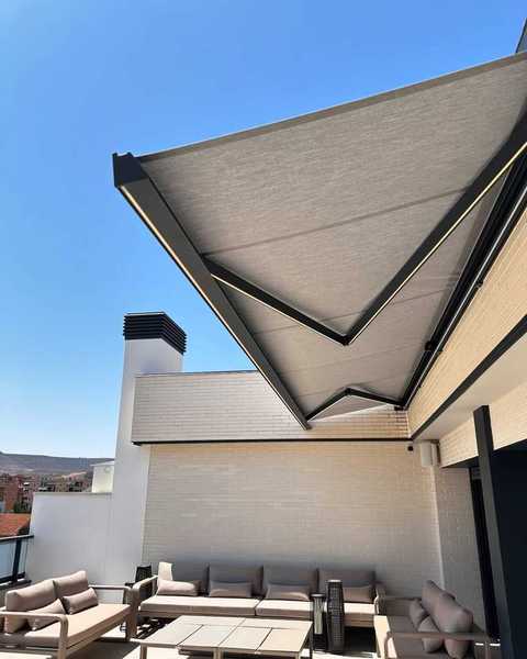 KÜADBOX-400 alcanza los 12 metros de línea con salidas de 4 metros gracias a la posibilidad de instalar hasta 4 brazos. La forma del perfil posterior es la clave que permite esta posibilidad sin obligar a incrementar las dimensiones del cofre, que únicamente precisa 178 mm de profundidad. Por las noches, es asombroso el efecto que causa este modelo con todas las posibilidades de su iluminación LED. KÜADBOX-400 es indispensable cuando se quiere disfrutar de las terrazas a todas horas, gracias a su luz regulable en toda su extensión, desde al perfil cofre al perfil frontal, pasando por los brazos ONYX LUX. Este toldo brilla con luz propia en todos los sentidos.