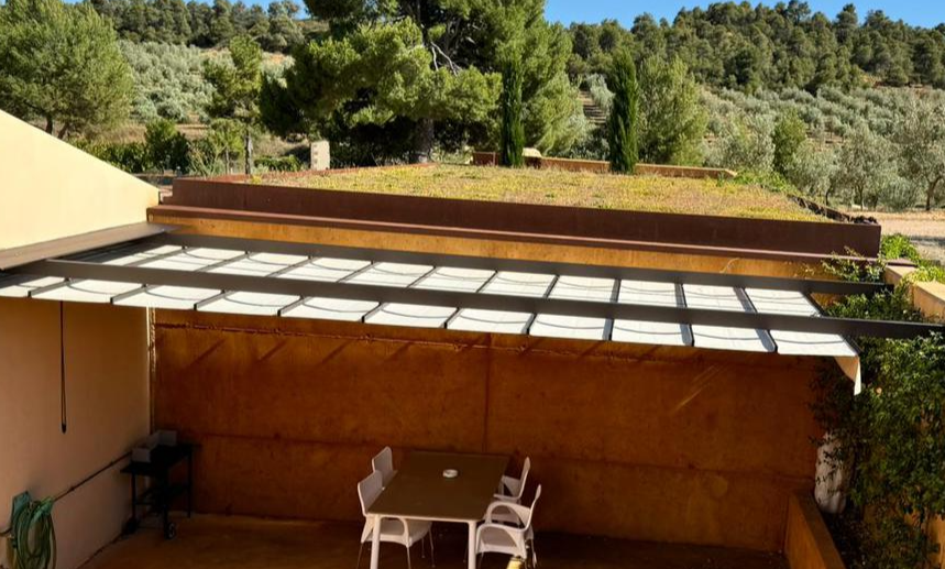 Sistema de toldo corredero diseñado para instalación entre paredes o pilares existentes, ideal para patios y terrazas residenciales. Fabricado con perfilería de aluminio extrusionado de alta resistencia, que garantiza durabilidad estructural, estabilidad y excelente comportamiento frente a la intemperie.