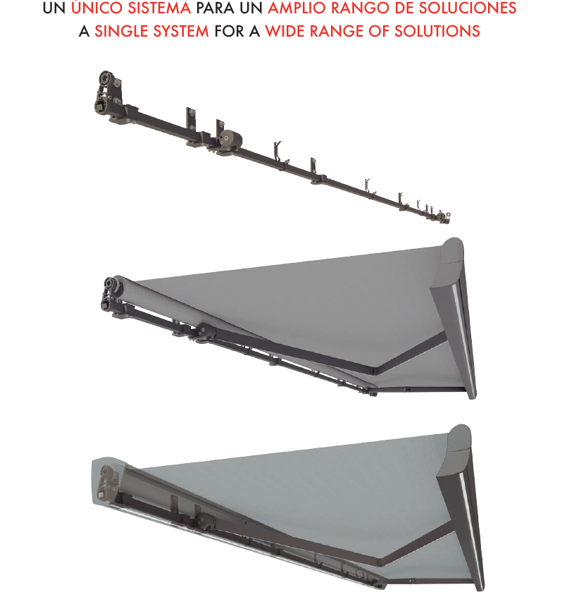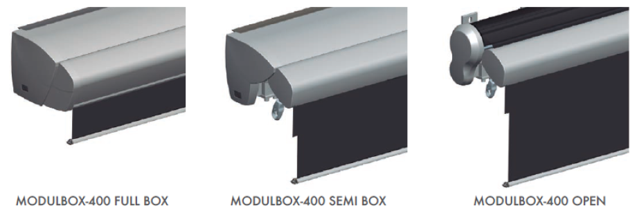 MODULBOX-400 es una gama de toldos con sistema monobloc diseñado para conseguir las máximas dimensiones con una configuración compacta y atractiva.
