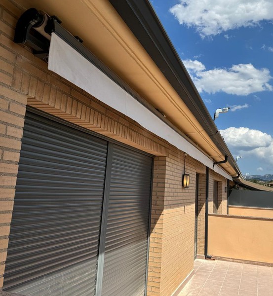 • Gracias al sistema de una sola pieza, es posible distribuir el peso del toldo a lo largo de la fachada. Los soportes frontales o de techo que sujetan la barra de 40x40 se colocan en varios puntos