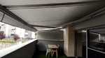 El soporte MONOBLOC 350 es compatible con el kit de brazos cruzados: una solución para que la proyección del toldo no esté limitada por la anchura disponible en espacios reducidos.