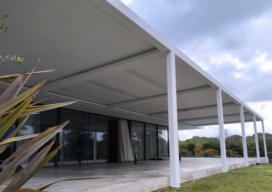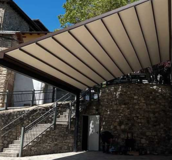 Las pérgolas bioclimáticas permiten regular de forma precisa la entrada de luz, ventilación y protección frente a la lluvia gracias a sus lamas orientables, aportando confort durante todo el año. Por su parte, las pérgolas tensadas destacan por su estética limpia y su gran resistencia estructural, siendo una solución ideal para cubrir amplios espacios con sistemas de desagüe eficientes y un diseño arquitectónico contemporáneo.