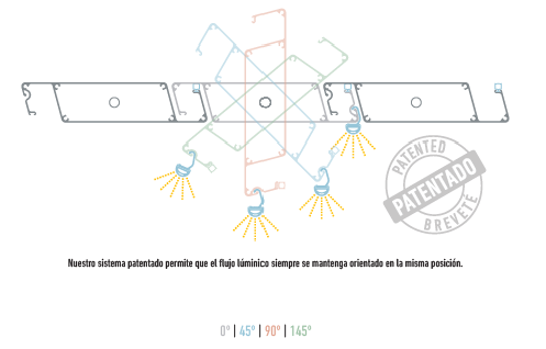 La mayoría de sistemas de iluminación, instalados en las lamas de las pérgolas actualmente en el mercado, ofrecen su máxima eficiencia energética cuando las lamas se encuentran cerradas. Esta eficiencia se ve comprometida al orientar las lamas, ya que estas al girar sobre su eje proyectan la luz sobre las lamas contiguas por lo que se pierde la mayor parte del flujo lumínico. Nuestro sistema patentado permite un flujo lumínico constante y siempre orientado al mismo punto, lo que se traduce en un mayor confort y un importante ahorro energético ya que no es necesario sobredimensionar los equipos de iluminación ni instalar iluminación perimetral.